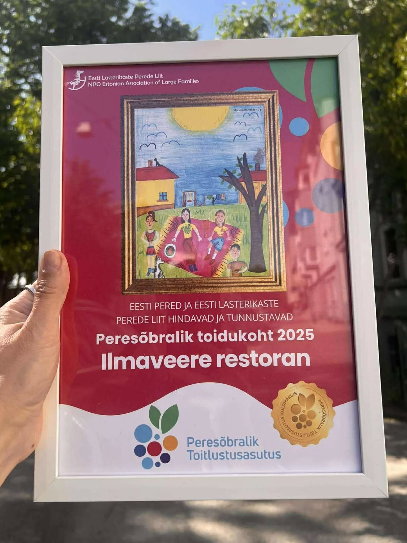 “Oleme väga tänulikud ja rõõmsad nii suure tunnustuse eest. Kuna oleme ise samuti suur pere ja reisime palju koos lastega, teame hästi, kui oluline on lastesõbralik ja arvestav keskkond. Ilmaveerel oleme püüdnud seda luua mitte ainult siseruumides, vaid ka õues – tuues maja ümber loomi ja linde ning pakkudes lastele toredaid ja sisukaid tegevusi ka vabas õhus,” ütles sel aastal esimest korda osalenud ja Kuldmärgise pälvinud Ilmaveere restorani omanik Lenna Kuurmaa.