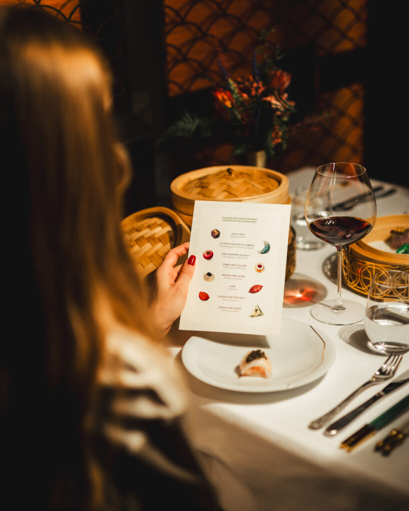 Menüü on inspireeritud sajanditevanustest Hiina kulinaarsetest traditsioonidest, mida tõlgendatakse kaasaegselt ja peenelt. Restorani köögi autor on Michelini tärniga pärjatud peakokk Chee Hwee Tong, kelle rahvusvaheline kogemus toob igasse rooga maailmaklassi puudutust.
