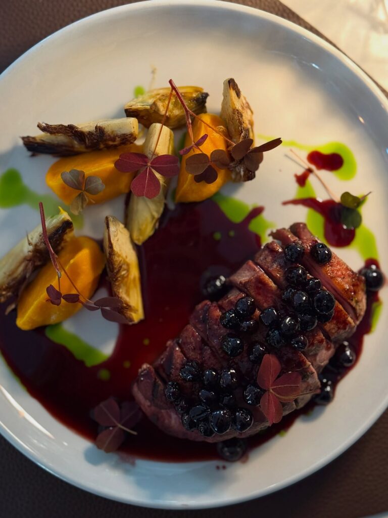 Toidud olid suurepärased – iga roog oli hoolikalt valmistatud, maitsete tasakaal oli täiuslik ning serveering esteetiliselt kaunis. Menüüs leidus nii klassikalisi kui ka põnevamaid valikuid, mis näitasid koka loomingulisust ja oskusi. Eriti väärib esiletõstmist pliin soolalõhe ja forellimarjaga, mis oli tõeline maitsete sümbioos! Atmosfäär oli hubane ja maitsekalt kujundatud – taustamuusika ja valgus lõid ideaalse meeleolu, et nautida nii õhtusööki kui ka head seltskonda.
